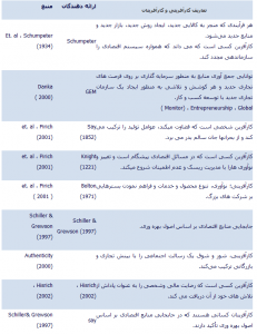جدول شماره (1) تعاریف کارآفرینی با جهت گیری اقتصادی و کسب وکار